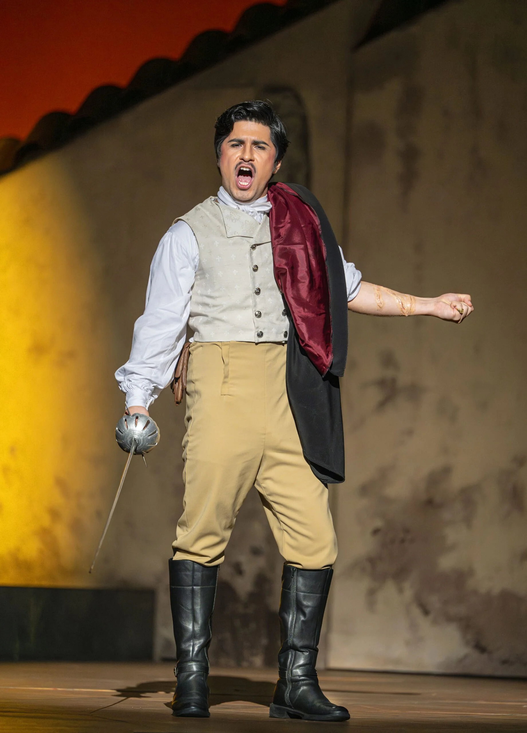 “Our Zorro, a k a Diego de la Vega, is brought fully to life through the handsome countenance and vocal aplomb of tenor Xavier Prado”